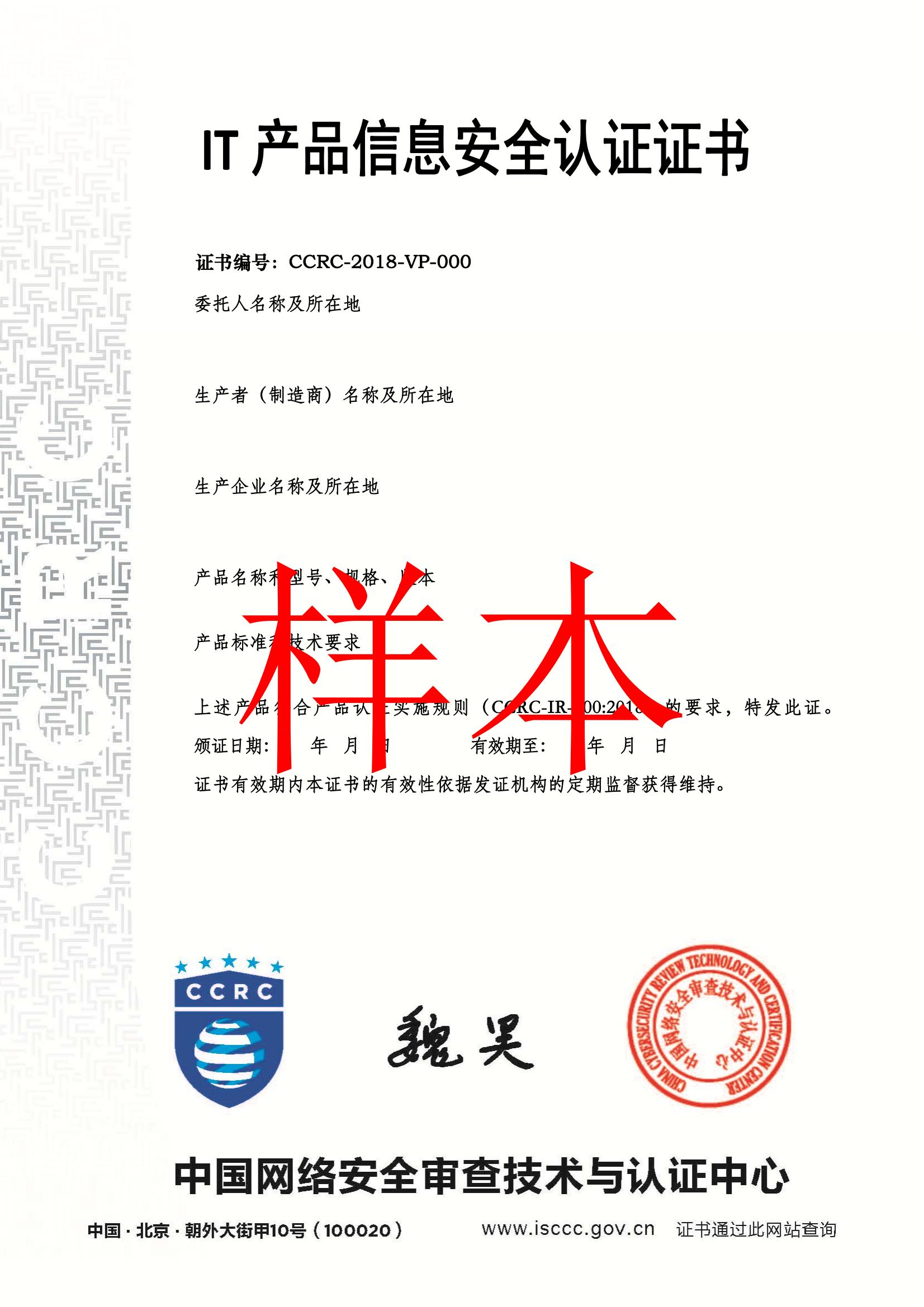 由中国网络安全审查技术与认证中心颁发